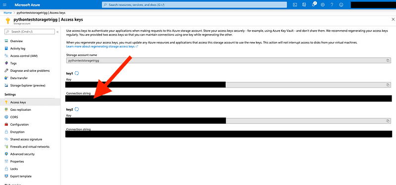 Connecting Azure Function and Storage As the last step, you have to give your Azure Function access to the Storage Account. To do that, go to https://portal.azure.com and navigate to your storage account you previously created in this tutorial. Go to “Access keys” and copy the key1 Connection string.